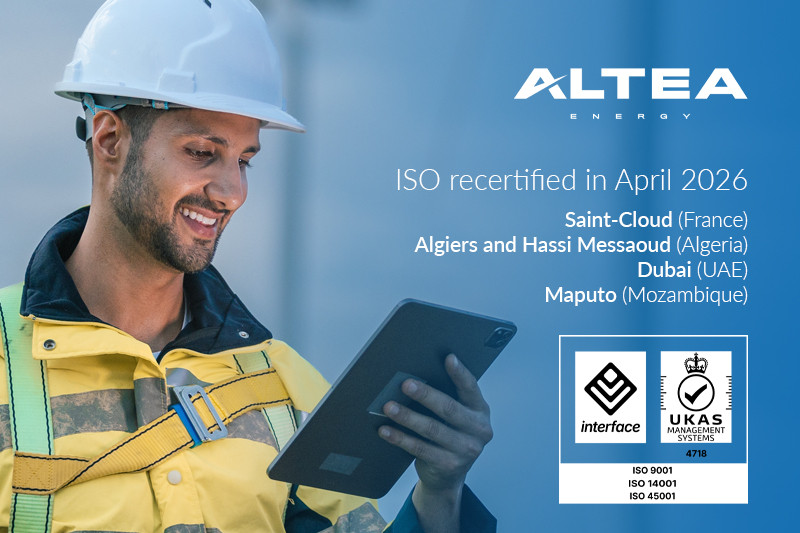 From March 23 to 26, 2026, Altea Energy underwent a four-day recertification audit covering all its subsidiaries: Saint-Cloud (France), Algiers and Hassi Messaoud (Algeria), Dubai (UAE), Maputo (Mozambique), as well as the three UK sites of its subsidiary TEAM Energy (London, Aberdeen and Norwich).